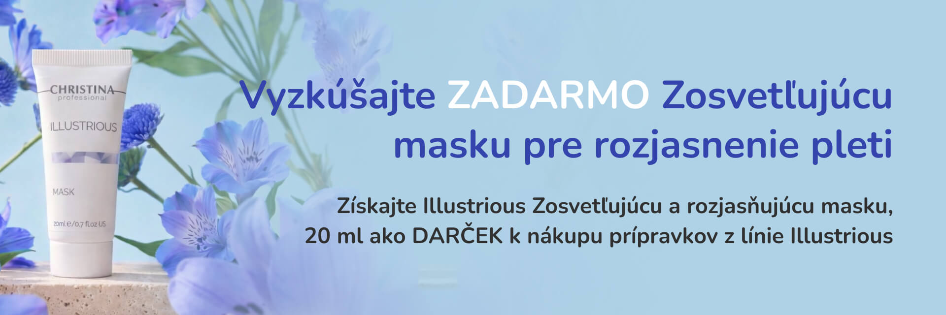 K nákupu vybraných prípravkov z línie Illustrious získate ILLUSTRIOUS Zosvetľujúcu a rozjasňujúcu masku (20 ml) ako darček zdarma.